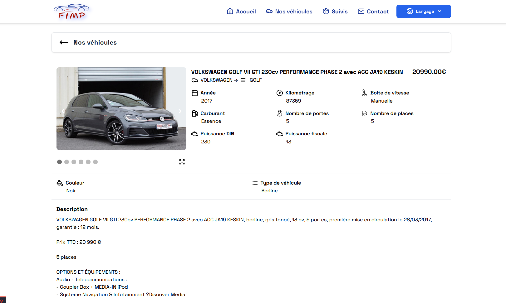 Projet en cours de finalisation. Dans le cadre de ce projet pour FIMP, une société spécialisée dans la revente de véhicules d’occasion, j'ai pris en charge l'intégralité du cycle de création d'une plateforme web sur mesure. Ce site a pour objectif de mettre à disposition le catalogue de l'entreprise et de faciliter la mise en relation avec les acheteurs.