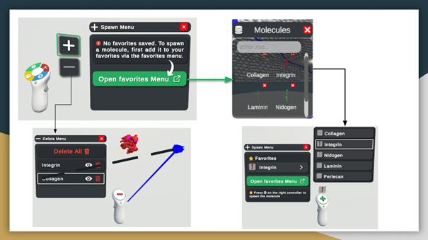 Développement d’une interface utilisateur en réalité virtuelle sous Unity pour DURABIN, une plateforme de visualisation et de simulation moléculaire. Le projet visait à concevoir une interface immersive, intuitive et diégétique, adaptée à un public scientifique et non expert. Travail centré sur l’ergonomie VR, la modularité des menus, l’interaction via contrôleurs et l’optimisation de l’expérience utilisateur dans un environnement 3D.