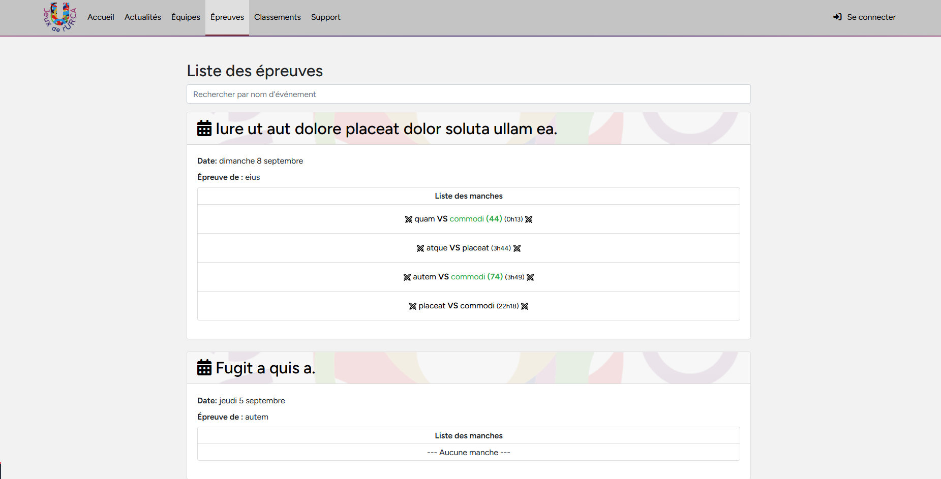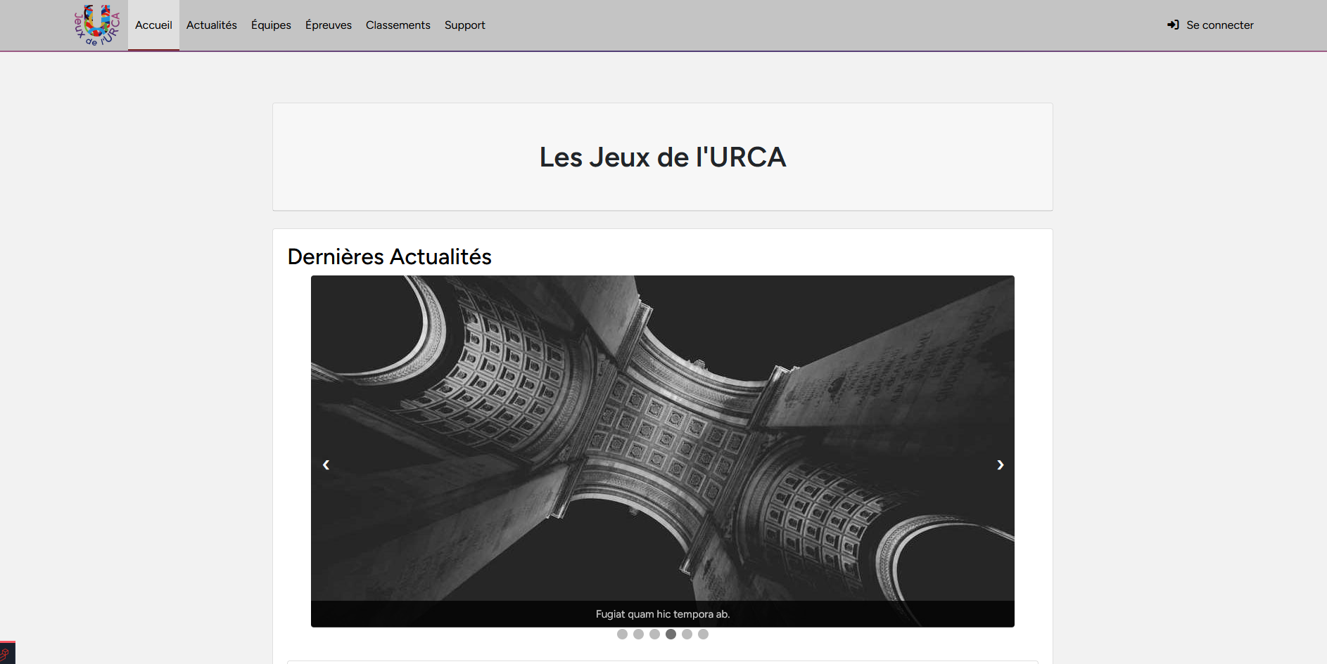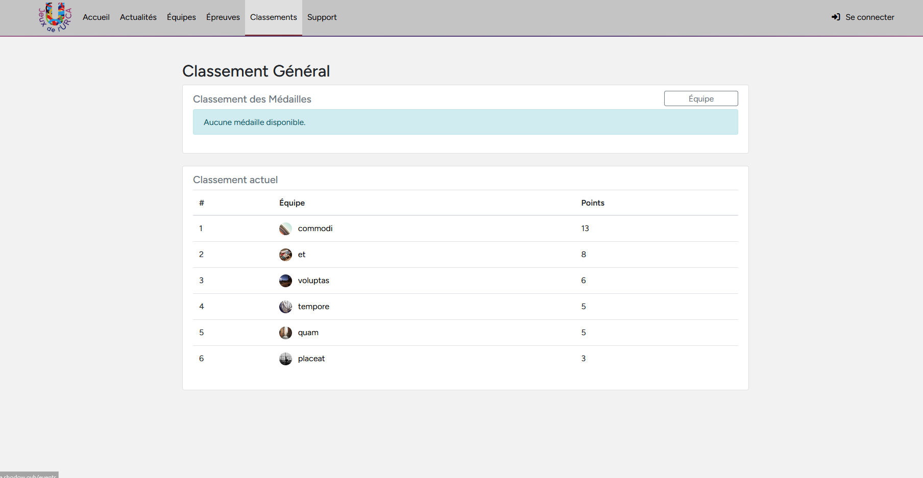 Dans le cadre d'un projet universitaire, j'ai co-développé une application web complète dédiée à la gestion d'un événement sportif : les Jeux de l'URCA. L'objectif principal était de fournir une interface permettant de consulter et de mettre à jour en temps réel les résultats, les classements et les actualités de la compétition. Ce projet à valu la note maximale et l'intégration d'éléments dans le site officiel.
